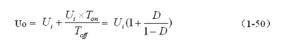 當(dāng)開(kāi)關(guān)電源工作于臨界連續(xù)電流狀態(tài)時(shí),流過(guò)儲(chǔ)能電感的初始電流i(0)等于0(參看圖1-13),即:(1-49)式中流過(guò)儲(chǔ)能電感電流的最小值iLX等于0。因此,由(1-45)和(1-49)式,可求得反轉(zhuǎn)式串聯(lián)開(kāi)關(guān)電源輸出電壓Uo為: