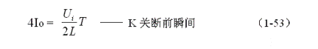 式中i(Ton+)為控制開(kāi)關(guān)K從Ton轉(zhuǎn)換到Toff的瞬間之前流過(guò)電感的電流,i(Ton+)也可以寫(xiě)為i(Toff-),即:控制開(kāi)關(guān)K關(guān)斷或接通瞬間,之前和之后流過(guò)電感L的電流相等。實(shí)際上(1-47)式中的i(Ton+)就是(1-45)式中的iLm,因此,(1-9)式可以改寫(xiě)為: