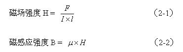 (2-1)式中磁場強(qiáng)度H的單位為奧斯特(Oe),力F的單位為牛頓(N),電流I的單位為安培(A),導(dǎo)線長度的單位為米(m)。(2-2)式中,磁感應(yīng)強(qiáng)度B的單位為特斯拉(T), 為導(dǎo)磁率,單位為亨/米(H/m),在真空中的導(dǎo)磁率記為 , = 1。由于特斯拉的單位太大,人們經(jīng)常使用高斯(Gs)作為磁感應(yīng)強(qiáng)度B的單位。1特斯拉等于10000高(1T=104Gs)。