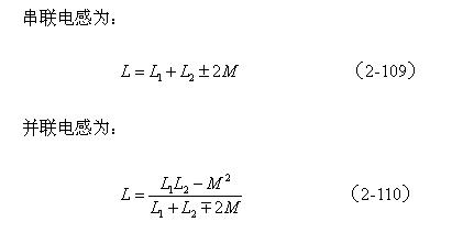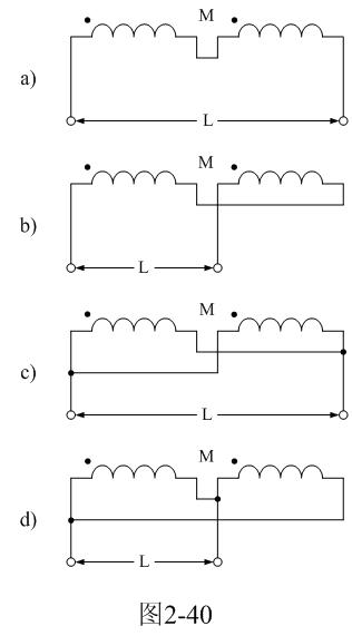 【說(shuō)明】互感M有正負(fù),圖2-40-a和圖2-40-c的接法互感M為正,圖2-40-b和圖2-40-d的接法互感M為負(fù)。兩個(gè)線圈之間的互感M為: