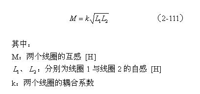 L1、L2 :分別為線圈1與線圈2的自感 [H]