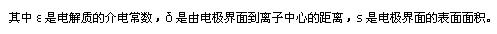 圖一為超級電容器的模型,超級電容器中,多孔化電極采用活性炭粉和活性炭和活性炭纖維,電解液采用有機(jī)電解質(zhì),如丙烯碳酸脂(propylene carbonate)或高氯酸四乙氨(tetraetry lanmmonium perchlorate)。工作時(shí),在可極化電極和電解質(zhì)溶液之間界面上形成的雙電層中聚集的電容量c由下式確定: