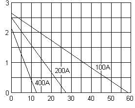 由于等效串聯(lián)電阻(ESR)比普通電容器大,因而充放電時(shí)ESR產(chǎn)生的電壓降不可忽略,如2.7V/5 000F超級電容器的ESR為:0.4mΩ,在100A電流放電時(shí)的ESR電壓降為40mV占額定電壓的1.5%,在950A電流放電時(shí)的ESR電壓降為380mV占額定電壓的14%,表明在額定電流下放電容量將為額定容量減小88.5%,這一特性將在圖3中看到。