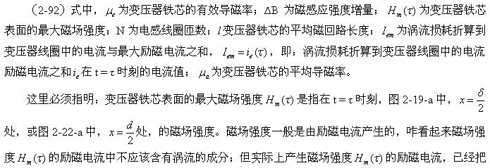 因?yàn)椋绻麤](méi)有渦流損耗,變壓器鐵芯中的磁場(chǎng)強(qiáng)度基本上只達(dá)到圖2-19-a或圖2-22-a中的平均值Ha,