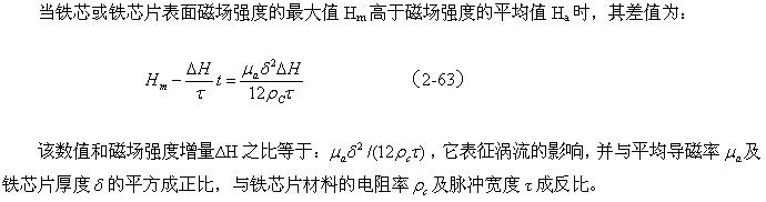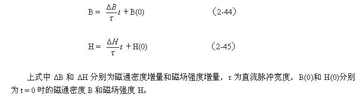 在圖2-19-b中,隨著時間線性增長部分是變壓器初級線圈勵磁電流產(chǎn)生的磁場;Hb是為了補償渦流產(chǎn)生的去磁場,而由變壓器初級線圈另外提供電流所產(chǎn)生的磁場。