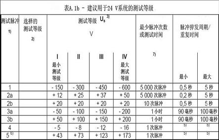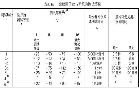 圖2:ISO-7637-2中用于12V/24V系統(tǒng)的測(cè)試等級(jí)