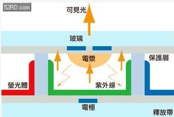 另外,在PDP中迫使放電的不一定非要用水銀蒸汽,也可以使用由氖(Ne)氙(Xe)相混或氦(He)氙(Xe)相混的惰性氣體。