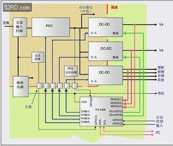 不過,PDP整體電路中仍有些部份可直接沿用較具彈性的可組態(tài)、可程式化晶片,在電源部份可使用具彈性調(diào)設(shè)組態(tài)的電源管理晶片,以此來因應(yīng)PDP所需的多種電壓準(zhǔn)位,如PotentiaSemiconductor的PS-2406晶片(具電源供應(yīng)、調(diào)整、管理、保護(hù)等多重效用)即可用于PDP的電源電路設(shè)計中。又如Xilinx的CPLD、FPGA亦可運用在PDP的邏輯電路設(shè)計中。