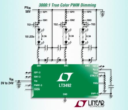 • 每個通道都能獨立調(diào)光至高達 3000:1 的調(diào)光比