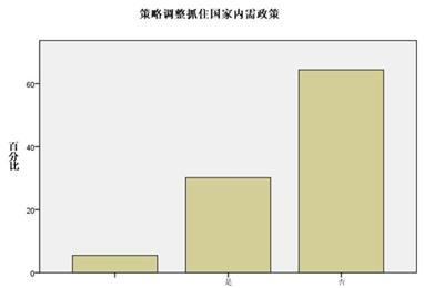 調(diào)查顯示,在危機影響中,企業(yè)做出了降低一切成本開支,重新調(diào)整供應(yīng)商、加大市場開發(fā)力度,調(diào)整客戶群,抓住國家內(nèi)需政策等一系列戰(zhàn)略性政策調(diào)整,其中,企業(yè)本身的調(diào)整降低一切成本開支和加大市場開發(fā)力度成為最重要部分,分別占40.4%和54.8,正所謂內(nèi)因決定外因,從主要矛盾出發(fā)。而在外因當(dāng)中,在重新挑選供應(yīng)商、調(diào)整客戶群和抓住國家內(nèi)需政策上,企業(yè)的選擇比例分別是15.1%,36.3和30.1%。(如下列組圖所示)
