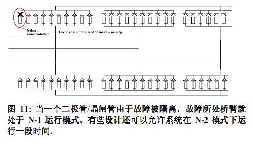 整流器中的半導(dǎo)體和快熔的配合需要仔細(xì)考慮。一個考慮周全的熔斷器保護方案基本不存在半導(dǎo)體爆炸的可能。與之相反,不當(dāng)?shù)南到y(tǒng)設(shè)計將會導(dǎo)致燃弧和起火、損壞整個整流器單元、以及操作人員的人身傷害。按照N-1模式設(shè)計系統(tǒng)可以保護用戶免受生產(chǎn)線部分或全部停頓帶來的損失。因此,在大功率整流應(yīng)用中,都是基于N-1模式的連續(xù)滿載運行。在某些應(yīng)用中,客戶甚至要求按N-2-或更多來進行設(shè)計,這些都要加以考慮。如果整流器在N-x模式下運行了過長的時間,而整流器本不是按照N-x模式來設(shè)計的,那么結(jié)果就是故障熔斷器所在橋臂的所有其他熔斷器也受到了傷害。