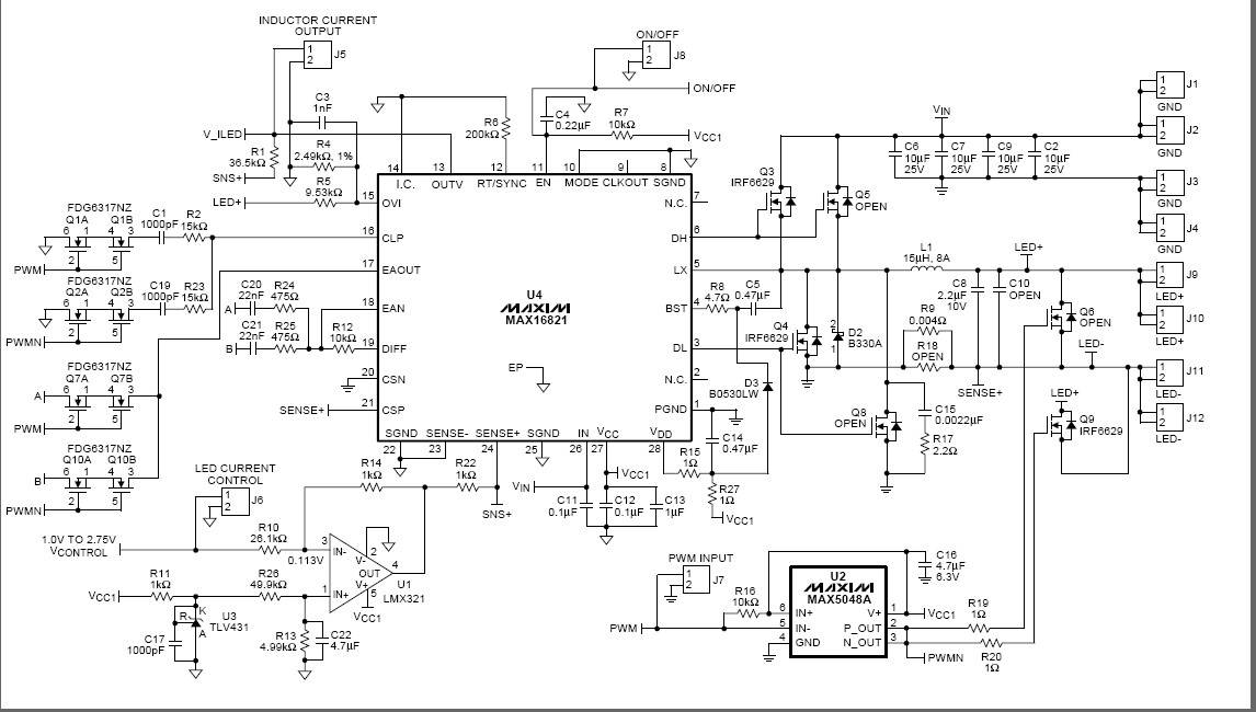 - 使用MAX16821 PWM HB LED驅(qū)動(dòng)器實(shí)現(xiàn)降壓轉(zhuǎn)換