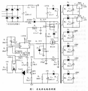 本文介紹了一種基于專用芯片UC3842的開關(guān)穩(wěn)壓電源。在電機(jī)調(diào)速控制器中,該電源提供功率開關(guān)元件基極(柵極)驅(qū)動(dòng)電壓和控制電路工作電壓。開關(guān)電源性能的好壞直接影響到電機(jī)調(diào)速控制器的工作可靠性。該電源是為30 kW開關(guān)磁阻電機(jī)控制器設(shè)計(jì)的,也適用于采用功率MOSFET或IGBT作為開關(guān)元件的中小功率感應(yīng)電機(jī)調(diào)速控制器。