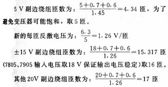 實(shí)際取300匝以便于繞制與計(jì)算。則變壓器副邊繞組匝數(shù)計(jì)算如下: