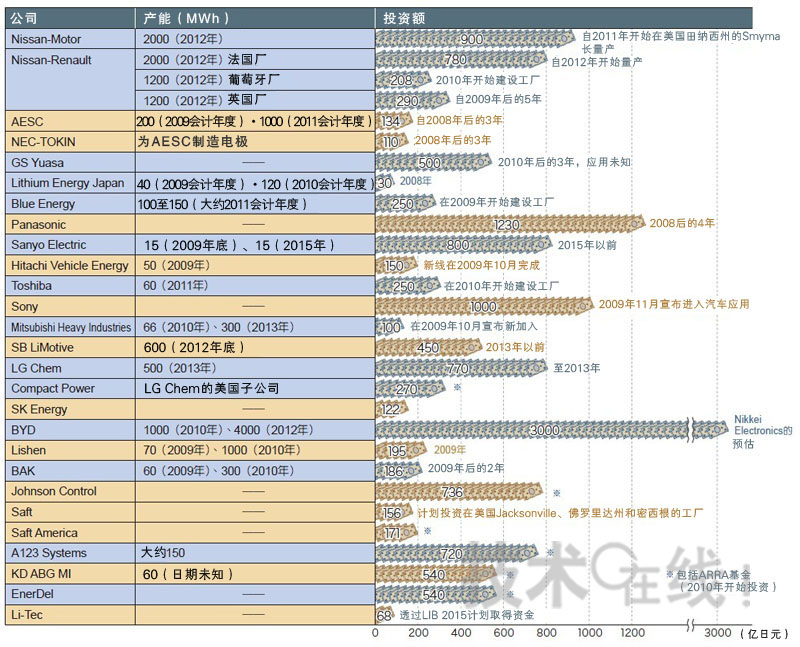 單單是NikkeiElectronics所調(diào)查的投資就已經(jīng)超過(guò)1萬(wàn)億日元了。鋰離子充電電池的帶動(dòng)應(yīng)用即將從手機(jī)轉(zhuǎn)向電動(dòng)車(chē)。