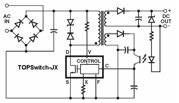 圖:TOPSwitch-JX用于反激式電源設(shè)計