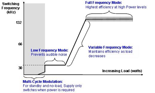 PI市場部資深經(jīng)理李子俊強調(diào)了TOPSwitch-JX特有的多模式控制(MCM)算法,采用該技術(shù)可持續(xù)監(jiān)測輸出功率,以確定最佳開關(guān)模式并改變MOSFET的工作頻率,從而提高整個負載范圍內(nèi)的功率效率。該技術(shù)是內(nèi)建在TOPSwitch-JX芯片內(nèi)部的,無需電源工程師做特殊的設(shè)計。李子俊表示:“開關(guān)電源設(shè)計的主要訴求是在輕載的時候如何把電源本身功耗降低,在重載的時候如何把轉(zhuǎn)換效率提高。采用該特殊的技術(shù),在空載和輕載時降低開關(guān)頻率,能極大的降低輕載及空載的功耗,對于能源之星要求的顯示器待機100mW,適配器空載100mW,以及PC電源待機0.5W的要求,均能充分滿足。比如針對一款顯示器的設(shè)計,在264VAC輸入時空載功耗為66mW,加上待機時負載功耗30mW,完全能滿足標準要求。此外,由于從輕載到重載開關(guān)頻率也在線性變化,從而保證了從輕載到重載的轉(zhuǎn)換效率平整。”