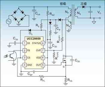 圖1:UCC28600的典型應(yīng)用。