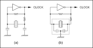 晶體和陶瓷諧振器大多被用在皮爾斯振蕩器中,其中晶體或諧振器作為調(diào)諧元件用在反相放大器的反饋中。為了使電路穩(wěn)定,需要另加電容和電阻來進(jìn)行相移補償和增益控制。此外,還須用電阻提供一定的阻尼,以防過驅(qū)動造成晶體或諧振器永久損壞。