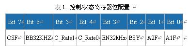 DS3232/DS3234在用戶可編程寄存器中提供了一個(gè)域,允許用戶延長溫度更新的時(shí)間,從而降低平均電流損耗。兩款器件在控制/狀態(tài)寄存器中提供C_Rate位,用來設(shè)置四種不同的溫度更新周期。寄存器定義如表1所示。