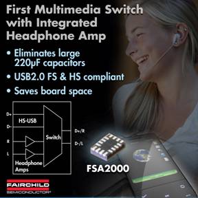 飛兆半導(dǎo)體公司(Fairchild Semiconductor)專注開發(fā)提升用戶滿意度以及使產(chǎn)品取得市場成功的模擬和功率功能,為手機設(shè)計人員提供一款集成有無電容耳機音頻放大器的自動選擇高速USB開關(guān)FSA2000,這是業(yè)界首款同類型集成式USB開關(guān)器件,而且能夠減少元件數(shù)量、電路板占用空間并降低材料清單(BOM)成本。