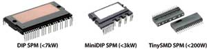 為了克服以上約束,最好采用智能功率模塊(intelligentpowermodule(IPM),也稱為SmartPowerModule(SPM®))。圖2所示為一個典型的全封閉模塊,它包含一個完整的三相電壓源變頻器,以及相應(yīng)的柵極驅(qū)動器和保護電路。采用這種模塊比分立元件方案節(jié)省電路板空間多達50%。尤其是這種模塊需要的外接部件極少,在設(shè)計上就考慮了EMC的要求。其峰值和平均EMC干擾強度比傳統(tǒng)設(shè)計低很多。