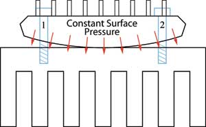 除TinyDIP/SMD外,SPM的表面都會有一定的翹曲。圖4為這種翹曲的一個夸張示意。模塊是用一些從表面中間穿出的螺絲緊固在散熱片上。如果安裝恰當(dāng),這種凸?fàn)畋砻婺鼙WC有足夠的熱量從模塊傳遞到散熱片。如果緊固螺絲用力不均,就可能在模塊內(nèi)產(chǎn)生應(yīng)力,導(dǎo)致模塊破損或性能下降。建議采用圖4所示的螺絲緊固順序(先按1?2的順序預(yù)緊固,再按2?1的順序最終緊固)。通常,預(yù)緊固扭矩為最大額定緊固扭矩的25%。只要散熱片與器件緊貼好了,就可通過SPM的內(nèi)置熱敏電阻獲取散熱片的溫度,從而簡化電路板的設(shè)計。
