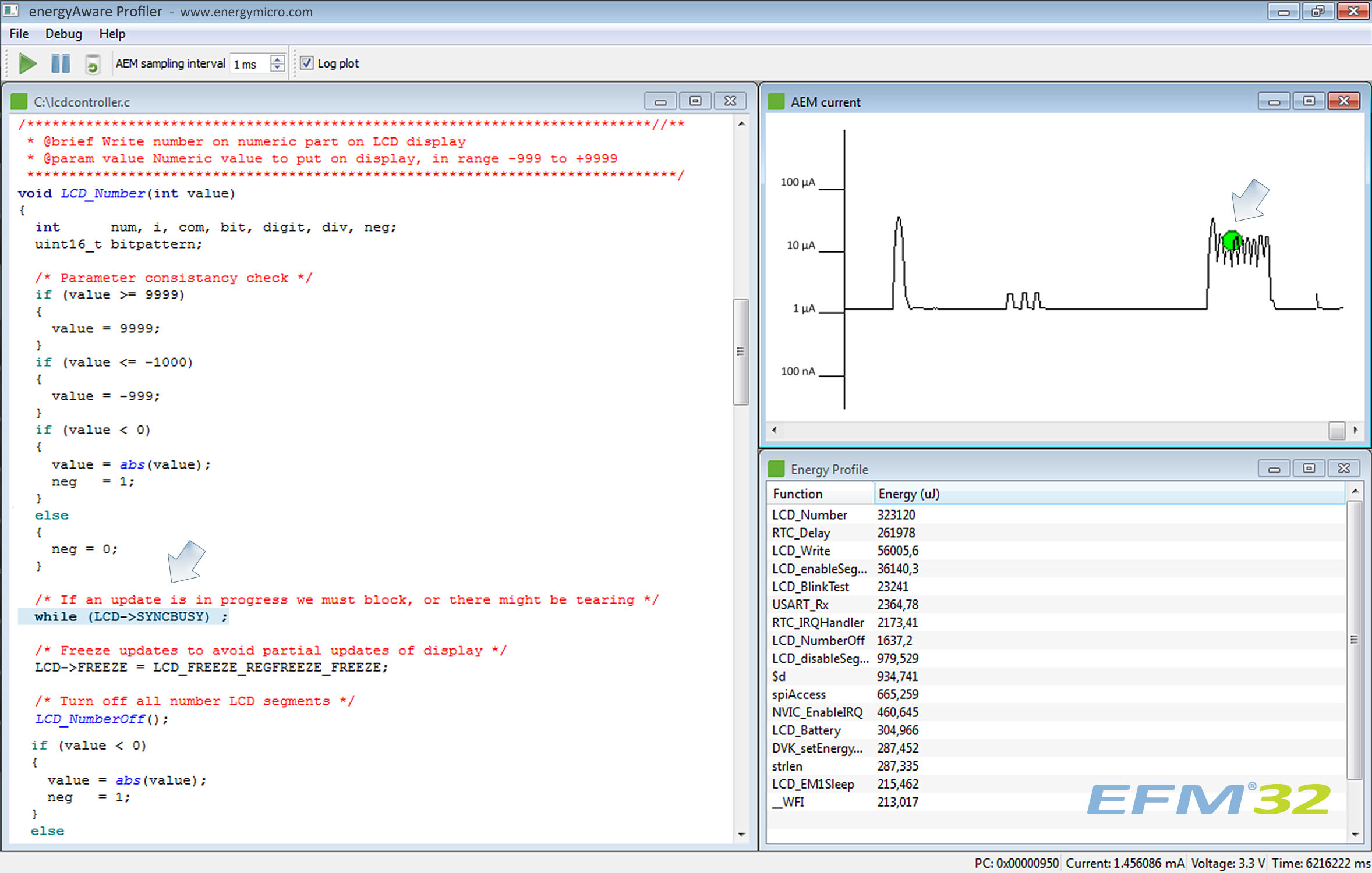 為EFM32 Gecko MCU開發(fā)的energyAware Profiler技術有一個從0.1μA至100mA的動態(tài)范圍,應用的精細調試與功能調試同時進行,從而將開發(fā)時間的結果最大化了。