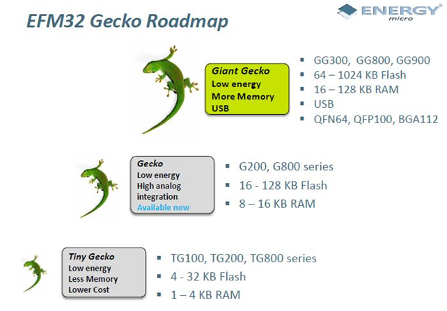 - 引腳和軟件與現(xiàn)有的Gecko 產(chǎn)品線兼容