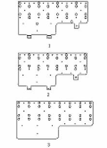 迭層功率母線共采用四層板,從下到上依次為絕緣板1,銅板負(fù)極,絕緣板2,銅板正極。圖2 是四層板的外形尺寸圖,1為銅板負(fù)極,2為銅板正極,3為絕緣板1和2。