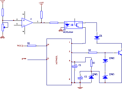 比較器A的第二腳接變壓器原邊電流轉(zhuǎn)換的電壓值,O1為快速光電耦合器HCPL4504,其輸出三極管與快恢復(fù)二極管相串聯(lián),當(dāng)變壓器原邊電流沒有超過設(shè)定的閾值時(shí),無集中過流信號(hào),此時(shí)光耦的輸入側(cè)二極管處于導(dǎo)通狀態(tài),在分散過流檢測(cè)通道中串入的光耦不會(huì)影響分散過流保護(hù)功能,當(dāng)變壓器原邊電流超過設(shè)定的閾值時(shí),產(chǎn)生集中過流信號(hào),此時(shí)光耦的輸入側(cè)二極管迅速關(guān)斷,快速光耦的輸出側(cè)三極管迅速關(guān)斷,M57962的1腳將懸空,此時(shí)IGBT如果仍處于導(dǎo)通狀態(tài),則驅(qū)動(dòng)模塊內(nèi)部的過流保護(hù)電路就會(huì)動(dòng)作,對(duì)IGBT實(shí)施軟關(guān)斷保護(hù)。這樣,不論分散過流保護(hù),還是集中過流保護(hù),都能對(duì)IGBT實(shí)施軟關(guān)斷保護(hù),防止過大的關(guān)斷電壓對(duì)IGBT造成損壞。