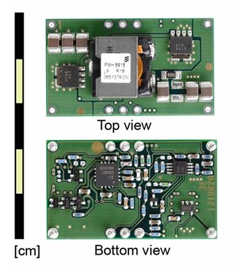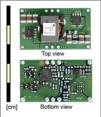 PMH8918LPOL穩(wěn)壓器的尺寸為38.1x22.1x9.0mm。通孔版的圖片如圖1左所示。