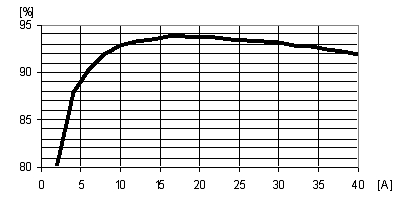 40A的數(shù)字設計專為大電流作了優(yōu)化,這反映在圖5中15-30A范圍內(nèi)的效率性能曲線上。當輸出電流低于10A時,它包括了18A模擬設計的可用工作范圍的絕大部分,其效率要比模擬POL穩(wěn)壓器略微低一些,這是由于較高的開關損耗所致。但在半負載點上(20A),其效率達到93.7%,比相同輸出電流的模擬設計提高了2.4%。即便是在40A的滿負載點上,效率仍達91.9%,也比相應的模擬POL穩(wěn)壓器高0.6%。故在所有關注的設計范圍內(nèi),40A數(shù)字設計的效率也優(yōu)于模擬設計。改善的原因歸結(jié)于所采用的元器件數(shù)量與20A設計一樣多。而當輸入電壓為9.6V時,40A設計的效率也能夠再提高1%。