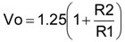1.25V為電壓參考值。分子和分母均除以R1可以得出: