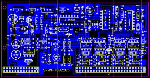 1.SPWM的驅(qū)動(dòng)核心采用了單片機(jī)SPWM芯片,TDS2285,所以,SPWM驅(qū)動(dòng)部分相對(duì)純硬件來(lái)講,比較簡(jiǎn)單,制作完成后要調(diào)試的東西很少,所以,比較容易成功。