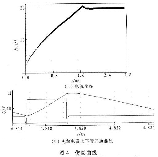 [page]圖3中,R1,R2為電壓測量電阻,Rc為電流測量電阻。調(diào)節(jié)R1可以設(shè)定最大輸出電壓。Rc限制最大輸出電流。當(dāng)最大電壓或電流其中一個達(dá)到給定值,則脈沖寬度最大。這樣可以保證負(fù)載正常工作。