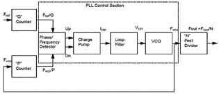 ---其中PLL的部分具有兩個(gè)輸入端,分別為參考頻率(Fref)與反饋頻率(Fvco),與一個(gè)輸出端(Fout)。三者之間關(guān)系可以公式表示如下。