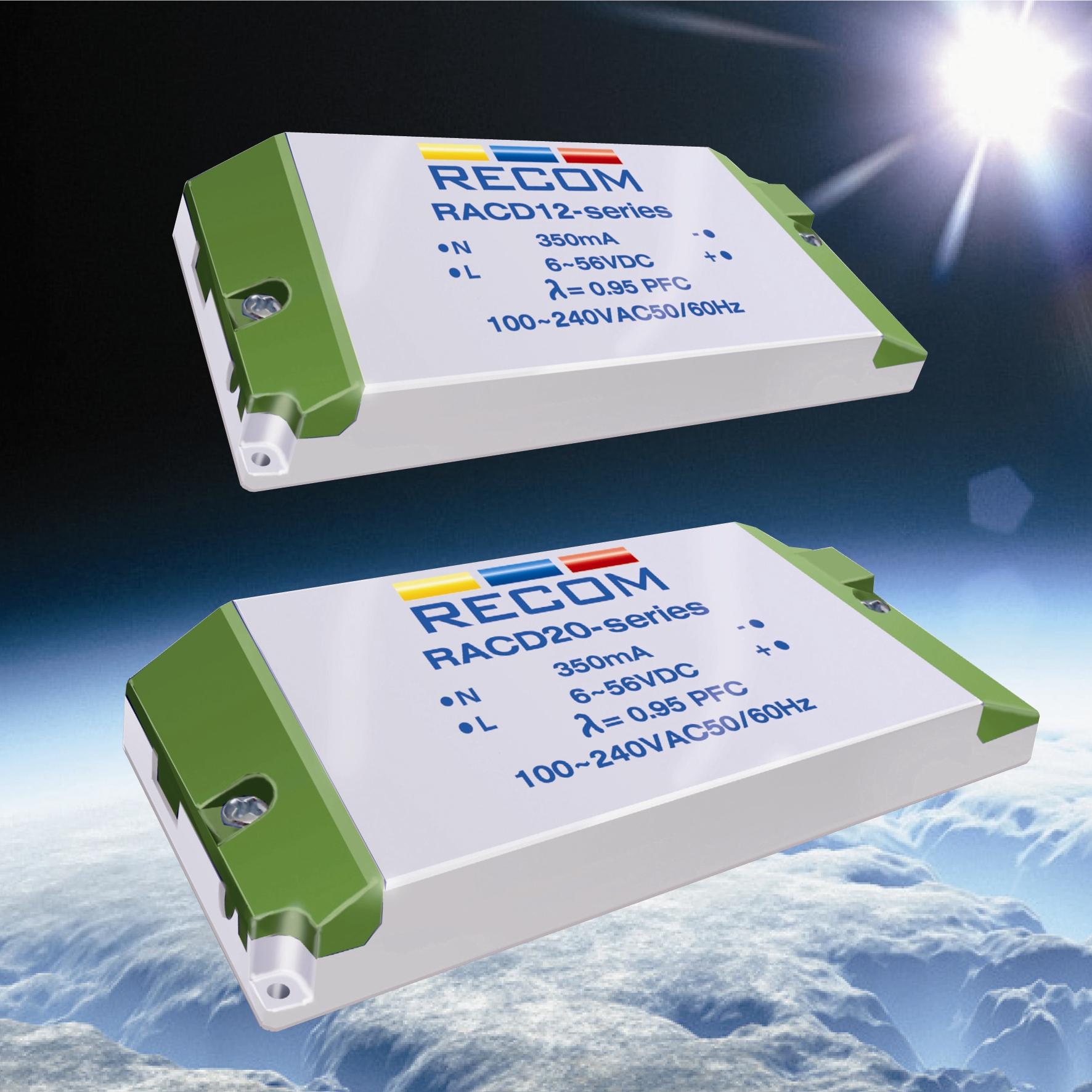 RECOM的全新系列恒流LED驅(qū)動器功率在12瓦至20瓦之間,具有通用AC輸入、功率因數(shù)校正的特性,并通過UL-8750認(rèn)證。