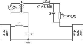 直流疊加法檢測(cè)電纜絕緣的實(shí)驗(yàn)室主接線圖如圖1所示。