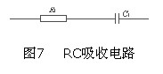 在本設(shè)計(jì)中,由于電源容量?jī)H為500W,因此,可以采用簡(jiǎn)單的RC吸收電路。電路圖如圖7所示。