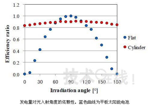 (1)相對(duì)于光的入射角度的變化,發(fā)電輸出的變化變小