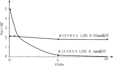 圖5有效磁導(dǎo)率與頻率的關(guān)系曲線
