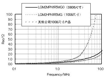 如同圖4中顯示的Rac特性,LQM系列產(chǎn)品能夠充分抑制Rac。同時,圖2的電流-感值偏執(zhí)特性中顯示,它在電流通電時也能確保高感值,擁有良好的電力變換效率特性。這些性能能夠?qū)崿F(xiàn)手機(jī)在待機(jī)狀態(tài)下的高電力變換效率,對延長電池壽命做出貢獻(xiàn)。