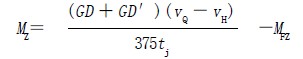 式中,MZ為制動(dòng)轉(zhuǎn)矩;GD為電動(dòng)機(jī)轉(zhuǎn)動(dòng)慣量;GD′為電動(dòng)機(jī)負(fù)載折算到電動(dòng)機(jī)側(cè)的轉(zhuǎn)動(dòng)慣量;vQ 為制動(dòng)前速度;vH 為制動(dòng)后速度;MFZ 為負(fù)載阻轉(zhuǎn)矩;tj 為減速時(shí)間。一般情況在進(jìn)行電動(dòng)機(jī)制動(dòng)時(shí),電動(dòng)機(jī)內(nèi)部存在一定的損耗,約為額定轉(zhuǎn)矩的18%~22% 左右,如計(jì)算出的結(jié)果小于此范圍則就無需接制動(dòng)裝置。
