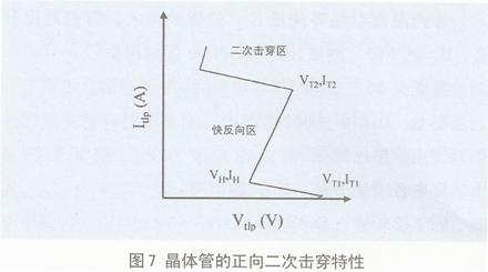 圖7是晶體管的正向擊穿特性,圖7中的VT·是器件的損傷點,其定義有以下三種設定:
