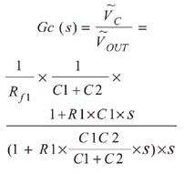 為了實現(xiàn)系統(tǒng)的抗干擾能力,Buck變換器除了主功率部分以外,還會有相應(yīng)的負(fù)反饋控制電路,補(bǔ)償網(wǎng)絡(luò)是反饋控制電路的一部分。補(bǔ)償網(wǎng)絡(luò)的加入可以提高環(huán)路的低頻增益,從而提高抗干擾能力;同時補(bǔ)償網(wǎng)路使系統(tǒng)擁有足夠的相位裕度,從而保證系統(tǒng)處于穩(wěn)定的工作狀態(tài),不會振蕩。圖2中黃色框內(nèi)的部分就是補(bǔ)償網(wǎng)絡(luò)部分,補(bǔ)償網(wǎng)絡(luò)中包括 R1,C1,C2和Rf1(注:Rf2在環(huán)路分析中不起作用),補(bǔ)償網(wǎng)絡(luò)的傳遞函數(shù)可以表示為: