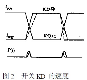 晶體管的開啟和關(guān)斷時(shí)間跟其截止頻率成反比。開啟、關(guān)斷時(shí)間越短,開關(guān)速度就越快。同時(shí)導(dǎo)通的持續(xù)時(shí)間取決于KQ和KD所使用的器件的開關(guān)速度。用速度不同的開關(guān)器件比較,開關(guān)器件的速度越快,同時(shí)導(dǎo)通的持續(xù)時(shí)間越短,尖峰干擾越是寬度窄、幅度大。