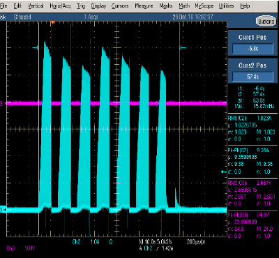 可見LVR100的典型值組件在0C/25C溫度下馬達(dá)保護(hù)時(shí)間還會(huì)更快,完全滿足小于150S的馬達(dá)保護(hù)要求。圖7為在25度下馬達(dá)堵轉(zhuǎn)保護(hù)的實(shí)測波形。