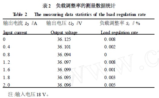 (3) 電壓調(diào)整率Su 的測(cè)試。在給定的輸入電壓從15~21 V 變化時(shí),用5 位半的數(shù)字表分別測(cè)出負(fù)載電壓的最大變化量,然后除以負(fù)載電壓就可以計(jì)算出Su。用同樣的方法可以測(cè)出Si 。