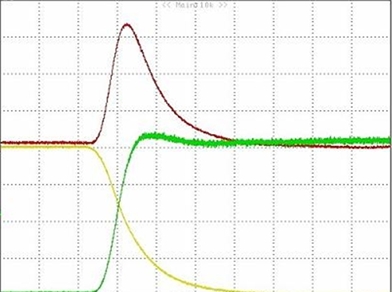 開關(guān)損耗其實(shí)也是一個(gè)很重要的指標(biāo)。從下圖可以看到,導(dǎo)通瞬間的電壓電流乘積相當(dāng)大。一定程度上決定了器件的開關(guān)性能。不過,如果系統(tǒng)對(duì)開關(guān)性能要求比較高,可以選擇柵極電荷QG比較小的功率MOSFET。